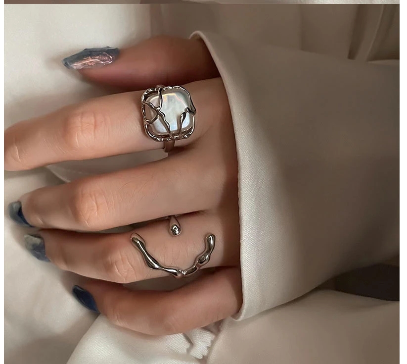 Gothic Punk Pearl Irregular Twining Rings for Wome..